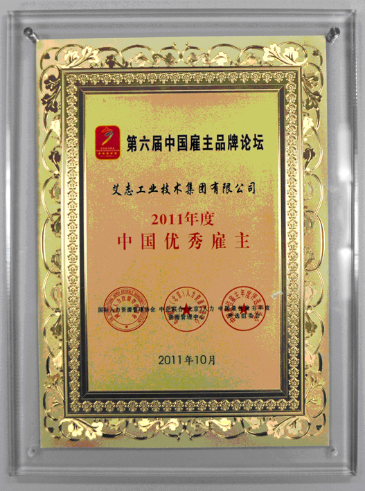 “2011年度中國最佳雇主企業”年度評選頒獎盛典于10月22日在北京隆重召開,集團公司即艾志工業技術集團公司獲選得“2011年度中國優秀雇主企業”稱號。
